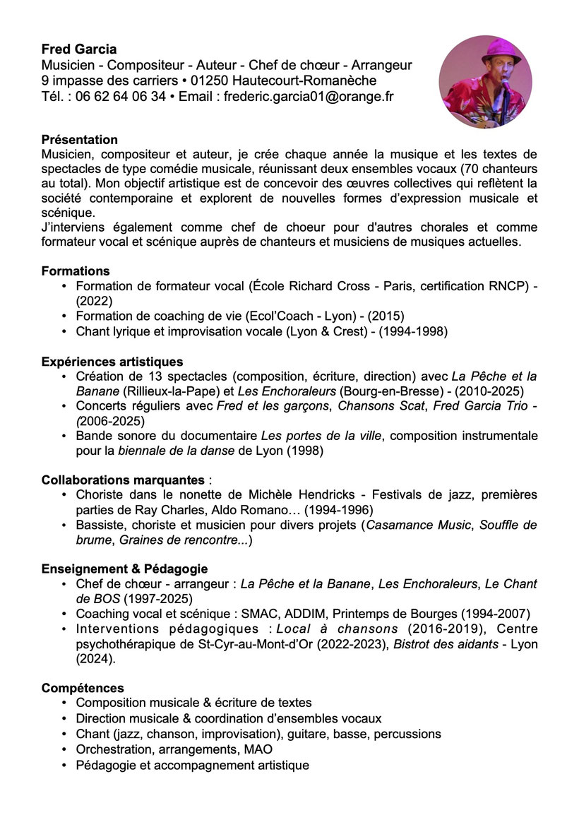 Dès 1997, il enseigne sur Lyon et son agglomération le chant et crée plusieurs ensembles vocaux. A partir de 2009, il combine ses talents d’auteur-compositeur-arrangeur, de pédagogue et de metteur en scène à ses compétences de chef de projets culturels ; il propose à deux ensembles vocaux d’interpréter ses créations et de mettre en scène des "Histoires chantées".